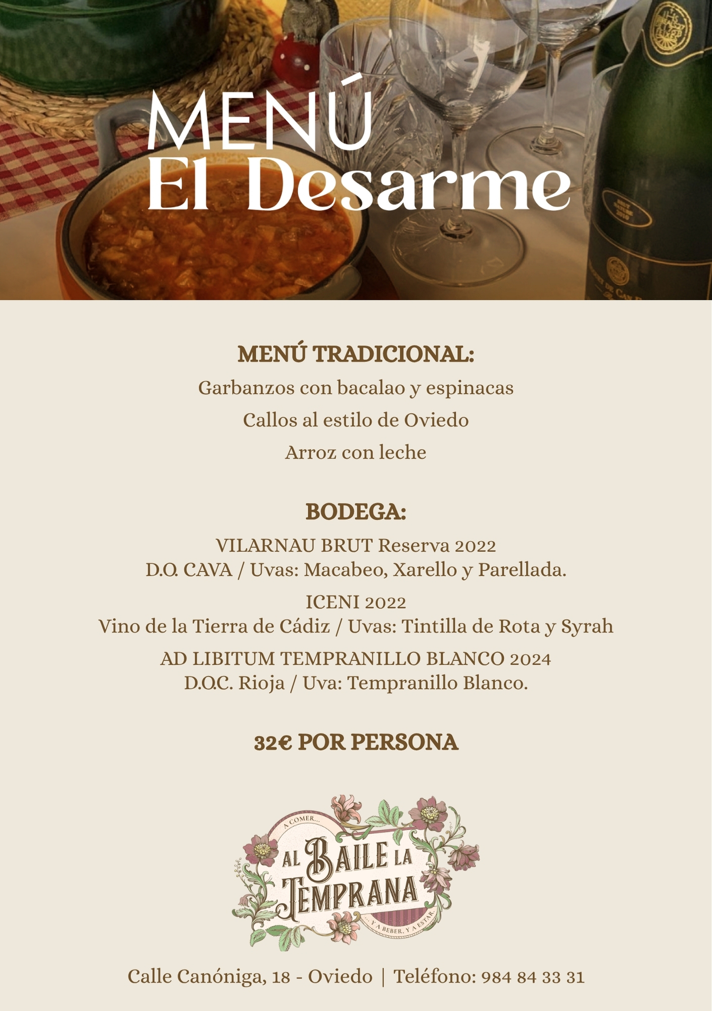 ¡Te esperamos en el restaurante Al Baile La Temprana, del 16 al 26 de octubre, para disfrutar juntos del menú de El Desarme: una tradición gastronómica que celebramos en Oviedo desde finales del siglo XIX, siendo una de las más antiguas de España!